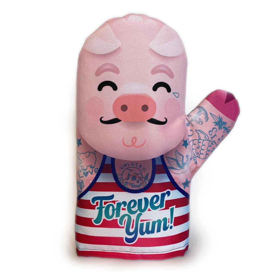 Yum non si accontenta di proteggere le tue mani dal calore: lo fa con un’attitudine da vero ribelle della cucina. Tra baffi hipster, occhiali vintage e tattoo che raccontano storie di salse e spezie, è il compagno perfetto per chi vuole cucinare con personalità e un tocco di irriverenza.